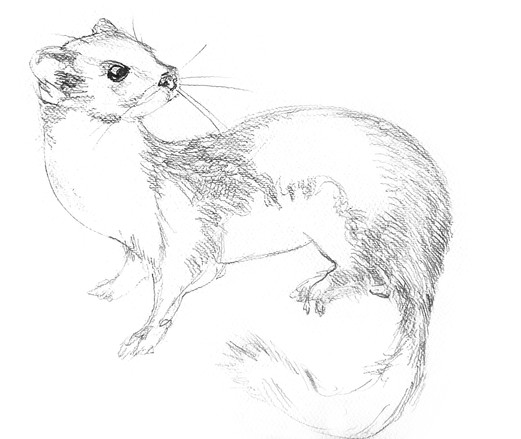 Thee old Freezer weasel. He is still in the freezer.This was a cat gift from a friend. I was honored to receive such a treasure.Simply a magnificent animal. Pencil sketch