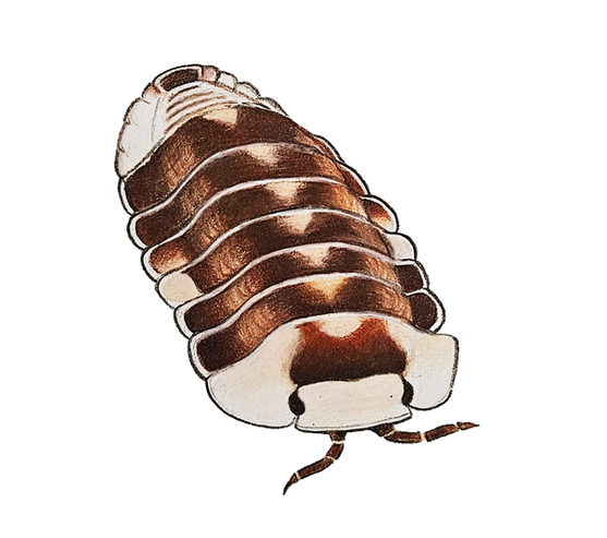 I used the coloration of Armadillidiun klugii Montenegro, but this drawing makes him look a little flatter than the real ones, so it's not perfectly accurate!