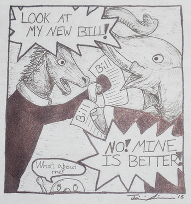 Well, doesn't look good for getting a new page of Rueday done this weekend. We need to tear up the floor of my drawing room/laundry room in search of a pipe leak under the house. Fun. To make a hole in the floor, we need to move my flat file. My flat file is stuffed with old art, and there I found this old, very dumb, Strange Fumes. Enjoy.
