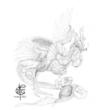 Using photoshop, I digitally colored and messed with this pencil drawing of a four legged chicken.Related content