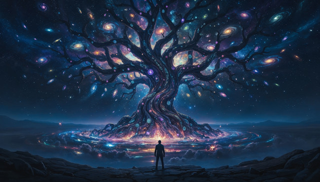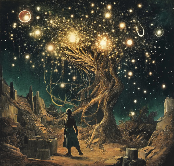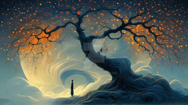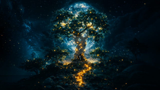 #magic #digitalart #fantasyart #surreal #forest #sky #wallpaper #ancient #cosmic #dusk #enchanted #fantasy #landscape #luminous #magicaltree #majestic #mountains #mystical #nature #night #serenity #silhouette #spiritual #twilight #wisdom #solitary_figure