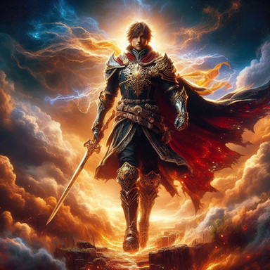 #adoptable #adventure #anime #armor #dawn #dramatic #epic #exclusive #fantasy #hero #knight #landscape #medieval #powerful #scenic #sun #sunset #sword #warrior #aiart