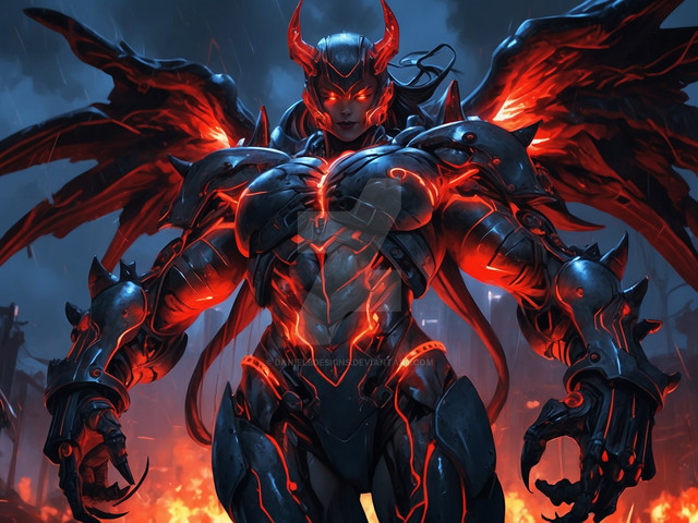 #characterdesign #warrior #magic #fantasyart #fantasycharacter #digitalart #conceptart #characterconcept #portrait #videogamefanart #armor #burning #cybernetic #dangerous #demonic #fantasy #female #fierce #futuristic #glowing #helmet #horns #medieval #metallic #mythological #powerful #red #weapons #fire #exclusiveadopt