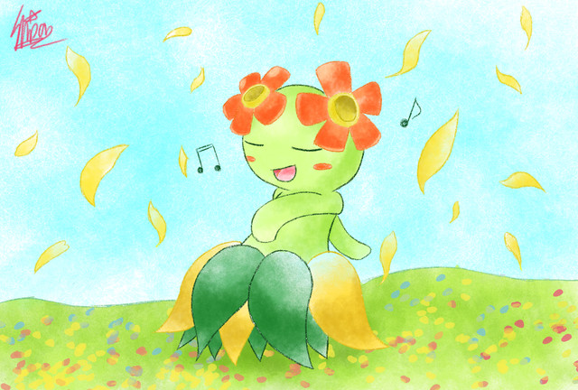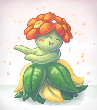 A request for /vp/ of a Bellossom like those cheesy hula-girl figurines for the dashboard of your car.Paint tool SAI. Around an hour and a half.