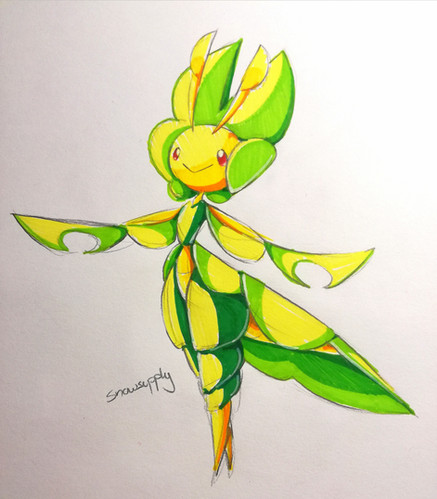 So I went to London for four days and it was horrifying and scary and we stayed in a jailcell and it was not nice but now I'm home and then I found out that Meloetta's Pirouette form is in the short too and we're all having orgasms and Sunny was there so I drew a Leavanny.Paint tool SAI. 10 minutes.