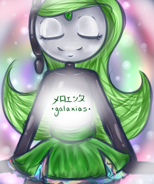 I finally got around to finishing 'a request, their Dance-Magic forme. I'm sorry this took so long. I started colouring it then someone else had a crack at it and then I realised how much was wrong and I couldn't go lineless so I just added lines and now I actually like it so I'm happy. :3A request for of their custom Meloetta form, Dance or Magic, complete with pretty glowing gold!