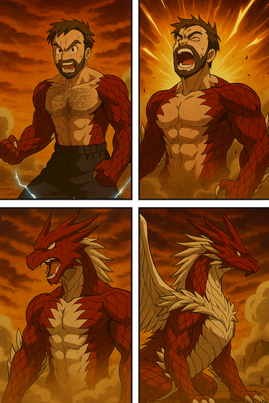 #anthro #dragon #gun #male #muscular #transformation #muscular_male