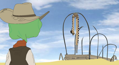 With moan he stood up. His knees trembled a little. Suddenly someone grabbed his arms and bent them on his back. Shortly after a rope was wrapped around his wrists again. He winced when he felt a revolver in his back.