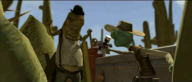A clicking sound let him froze. With wide eyes he watched how the bobcat aimed a gun at him.