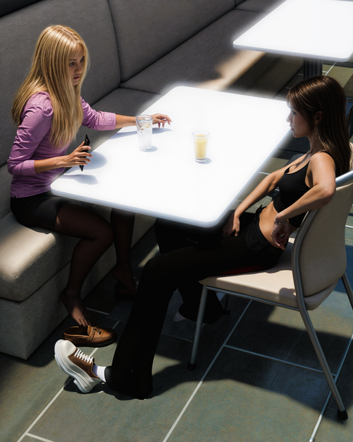 Sometimes I get caught looking. Here Adrea and Lynette take a break from rehersals.I think I know a way to get Adrea smiling again...