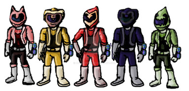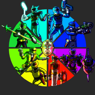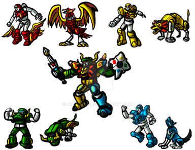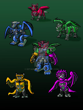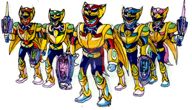 A commission for HyperDragoonHxThe complete bird or avian team as The Element Rangers.