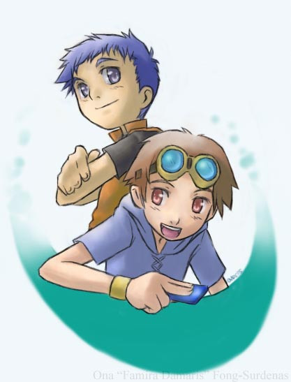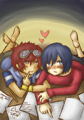 And this is the last colored Daiken pic I did when I was on vacations c:I think Daisuke isn't the most concentrated student. Ken's patient tho.