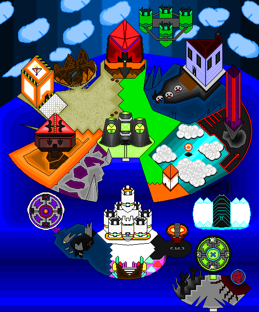 Update 3: The Final Zone of the adventure has been added in, the Glitcha-Tower, the home of the big bad, and a constant sight of what you're fighting towards that can be seen whenever the background is opened up to the sky. This tower is packed with 6 acts for each floor, each one holding a different theme as you climb higher & higher, slower making your way to the peak where Glitchazoid rests on the throne.