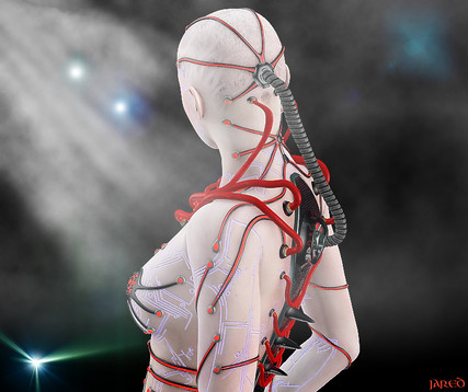 Cooper showed me this image on his iPad a while ago - it's in a slideshow of cool images done in Poser. It's very cool. I like the cybernetic merge concept. And it's executed very cleanly. Good work.