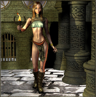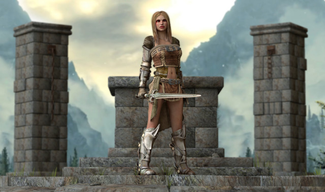 Love it. The wounds, the unsteady pose, the exhausted expression, the mismatched shin guards... all help elevate this to happy greatness. That's especially impressive considering the world is so crowded with lame 'girl with a sword' renders. This shows how it's done right!