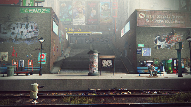 A subway station I am working on. I thought it was at a good stage to show some WIP and get some input.I am still thinking what to add to give the image more focus and more of a theme.