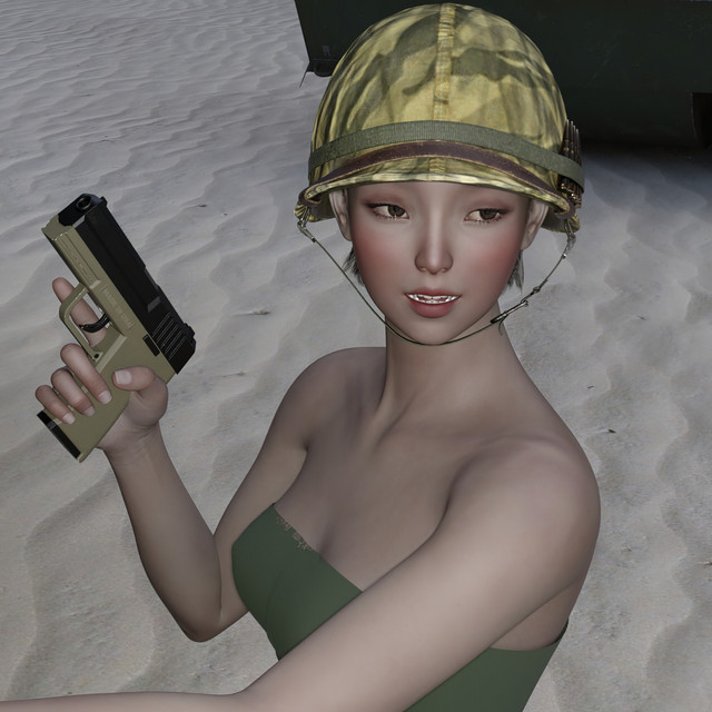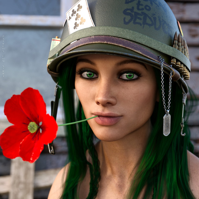 I modelled the M1 Helmet in Silo.. and thought I would do a Tank girl image using V4 from DAZ.The hair is from Aery soul and the skin is from my new character Shelby who will be available from Renderosity now.