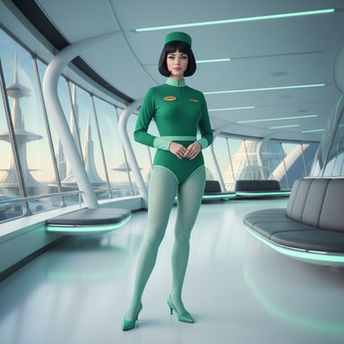 #scifi #flightattendant #leotard #pantyhose #retrofuturism #utopia