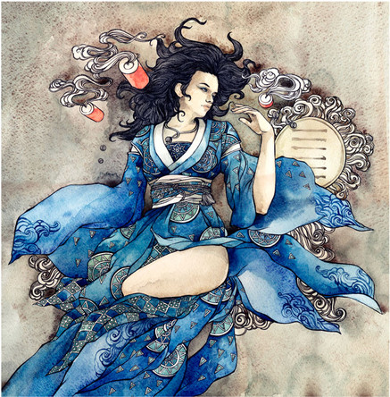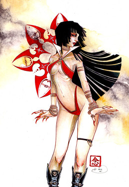 I always love how you do your backgrounds and that sword looks cool! Do you first paint the character first or background?