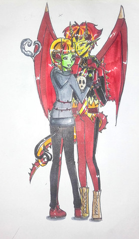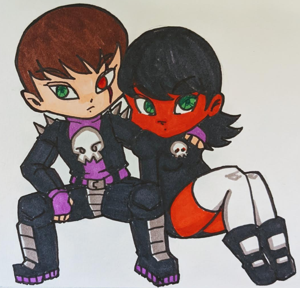 #blackhair #brownhair #chibi #couple #cute #darkskin #leatherjacket #originalcharacter #tan #tattoo