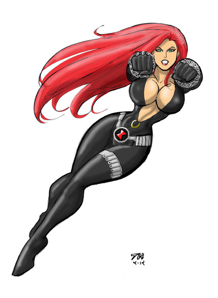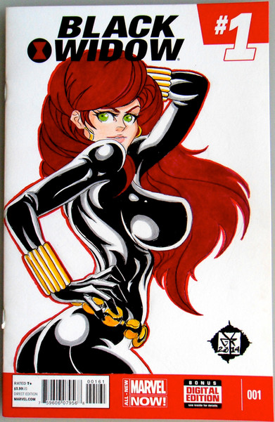 A revisit of the Jessica Rabbit cosplaying as Black Widow from last year. This dynamic front and back design shows that this crimson-haired beauty means business (as does her gun and bullets).All on a blank Secret Avengers #1 cover comic