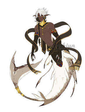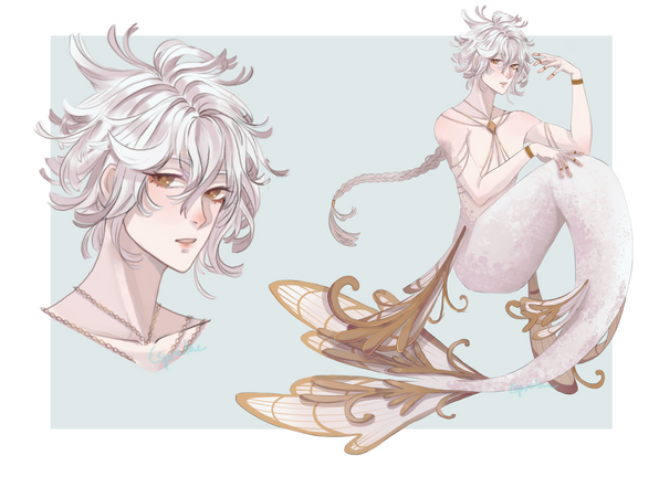 thigh up colored sketch for Kuumoneanother handsome merman with fluffy sheep traits ////