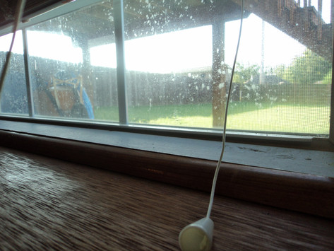 Artisticly speaking, the composition forces the eye to the top of the picture with out anything to bring it down. The really bright green along the bottom of the upper third just traps the eye, and the lack of light on the frame (w/ curtains) looses the eye to the intense brightness in the middle.