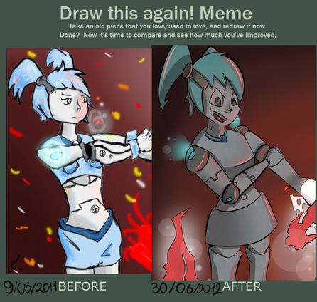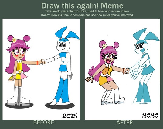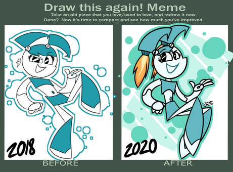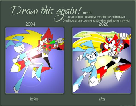 The one on the left reminds me of the diferent styles that xj9 went throught the 3 seasons , but the one on the right looks so awesome , you can really tell which parts of her body are closer to the screen. It almost gives it a 3D vibe but maybe im just being dumb