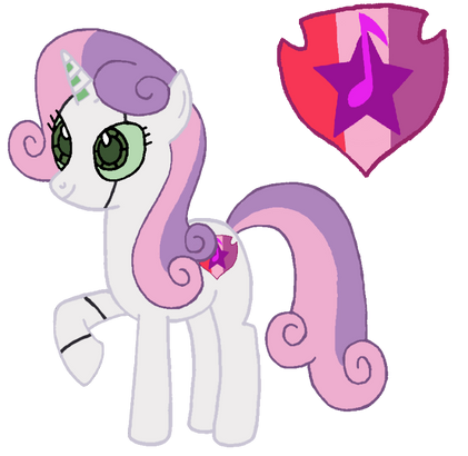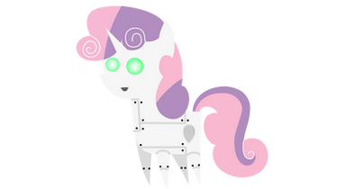 "Has my 'Friendship Acquisition Cutie Mark' achievement unlocked?"requested: "Sweetie Belle, from the series My Little Pony: Friendship is Magic, as a MLaaTR-style robot. Whether that means drawing her as a humanoid robot or drawing a robot pony in MLaaTR's art style is up to you. And, of course, any other details are yours to decide as well."