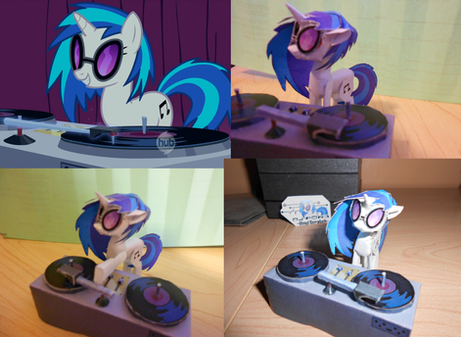 Been kinda bored waiting for the next college to start, so I've been killing time making silly little pictures. Also, ponies. Ran into someone here on dA who makes these awesome papercraft versions of them, including arguably the best pony of all time, Vinyl Scratch, aka DJ PON-3. However, since the DJ was only on screen for about 5 seconds, I thought she needed her turntable to be out here in paper. So, I made this. It's devilishly complicated, I won't lie, and designed to be made alongside Kna's Vinyl Scratch papercraft. For the right scale, you want the height of the table to be the same as the length from neck-to-flank of the horse.Instructions: [link]