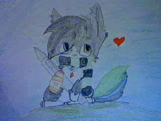 Näyttää ilmeisesti hyvälle tämä muidenki kuvassa. Meinaa tää on nii ihana kuva. Piirrät nii kival tyylil tollasii pyörei pehmosen näkösii sulosii iii aa o3o Sönkötän jotai iha omaa, haha. No pointti oli, että hän on varsin suloinen tapaus ja voisin antaa hänelle halin. Paitsi et se oon minä 8C No joku muu varmana antaa mun puolesta! 8D