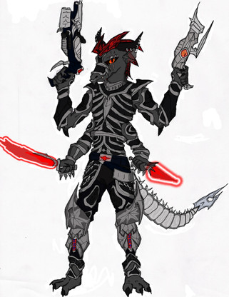 The armor he's wearing is the same as Alister Azimuth, seeing as Alister is a general i assume thats his armor from the praetorian guard, and since it's been about 20 years, i assume his armor would have rusted a bit resulting in it's brown/red color, so i made Slades armor shades of silver/grey instead as it's pretty much brand new armor