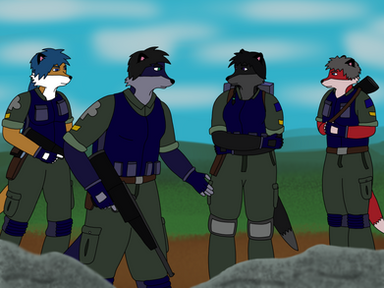 This is a line up of some of our praetorian guard characters, Tank, Bobby, Blake and Seymour Butts (made up random character just for this pic XD)