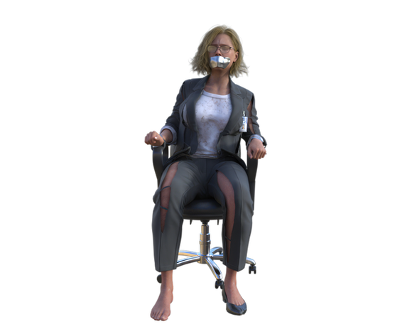A beautiful girl with an intense, focused stare.. Will she manage to use the scissors and escape Turk's torments?