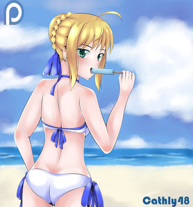 #butt #saber #sexy #fatestaynight #icecream #arthuriapendragon #swimwearbikini #fategrandorder