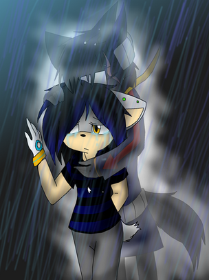 The picture itself was just me doodling Paylor. I liked this pose and started adding Luke's head but it was right at the top right corner of the sheet so I had to draw in pretty much all of his body digitally. I LOVED how his neck and shoulders look and still do. His anatomy isn't perfect I think it's his hips bothering me but I blame the angle he's at, same thing for his neck being slimmer than Paylor's but you can blame the cat genes he has for that. Other than that I love how he looks. I just love how he's got that single tear falling yet he looks so relaxed.
