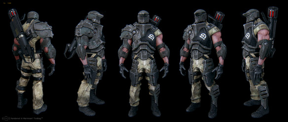 A shot of one of the player models I did for the Quake 4 Hardqore modification. It is loosly based off the sarge player model from quake3. It was a huge texture and mesh edit using default quake4 assets. I combined a few models from the game and retextured it.Related content