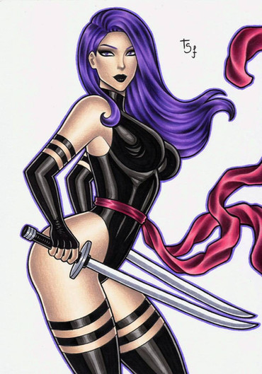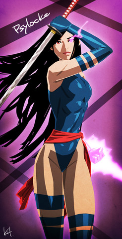 This will always be how I picture Psylocke. Her current costume is just a black bodysuit. It's such lazy costume design.