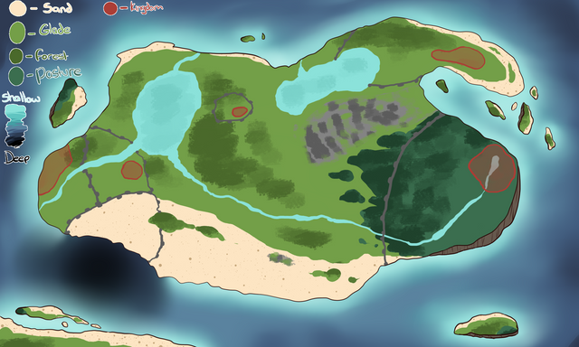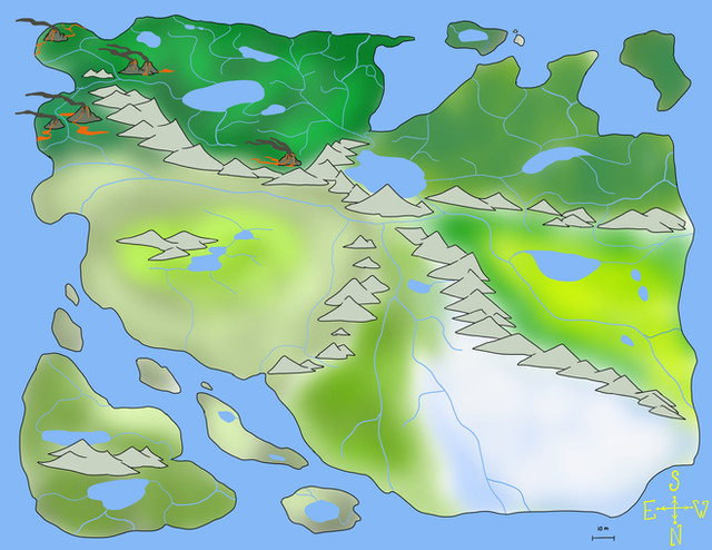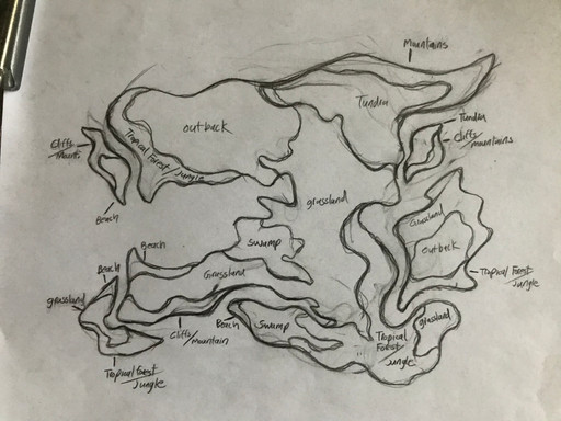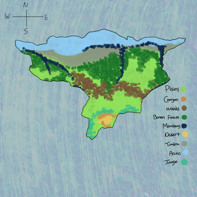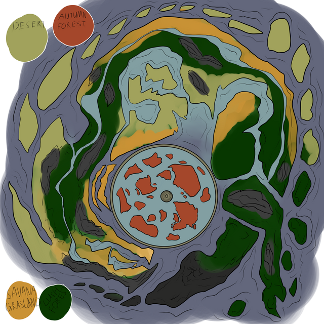 Used my tablet today to color my continent sketch, adding additional islands and added biomes to it.This is a mostly tropical continent, hence why thereβs no biomes like tundra and temperate forests.
