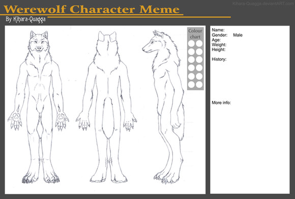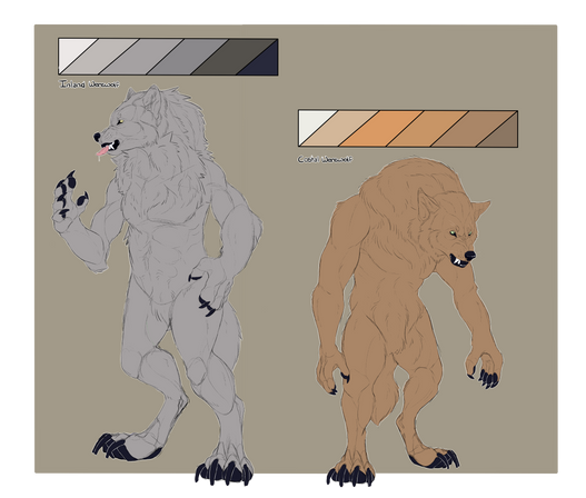 I didn't color these because I didn't think it would work out right given that Dogmen come in a variety of colors, including grey, brown, mottled, blonde, white, red, though the most common color appears to be black. In fact, it's often described as being jet black, light-absorbing black even. Their eyes are slanted, and the most common color for both eyes and eye shine is yellow or amber, but occasionally, green or blue-eyed Dogmen have been seen, and sometimes with white eye shine. Red eyes and red eye shine have also been reported in many cases, with even some where the witnesses claim they saw the eye color change from amber to red. There've also been cases where witnesses reported that the eyes don't just reflect light, but also glow by themselves.