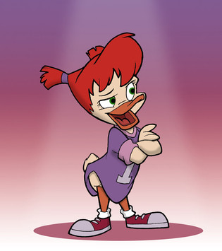 Gosalyn from Darkwing Duck show, Disney's. I haven't seen it in ages. I do remember I liked SO much this kid. I like kids. Gosalyn is such a cute and huggable thing. ^__^ So I just thought "Damn! I needa find some screenshots!" and I found some. Awful quality. Like people love LK, love Shrek, there's a lot of good S-shots of them but not many people like great old classics and just dusty good shows of our childhood. Why?...