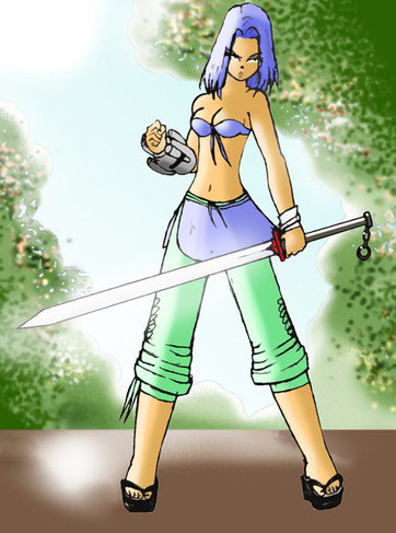 #blonde #blueyes #db #dbz #dragonball #dragonballz #dreadlocks #female #human #oc #sky #tree #warrior