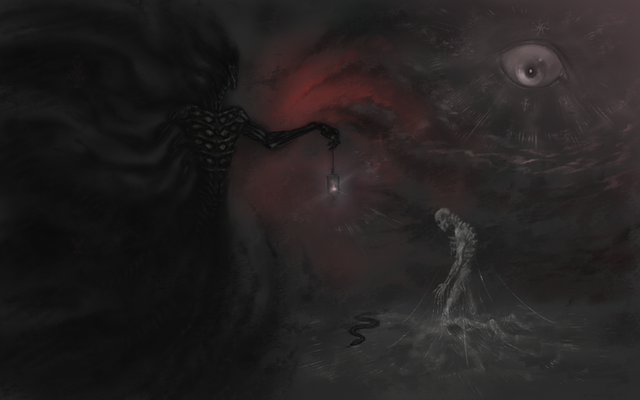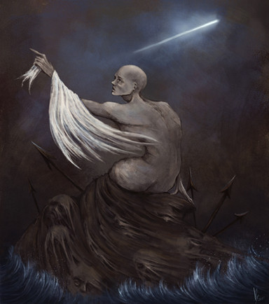 The background reminds me of the art of Caspar David Friedrich in a very good way. Wonderful work!