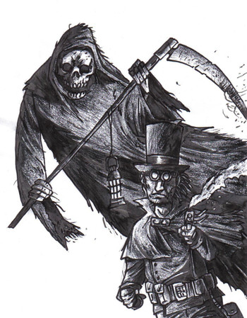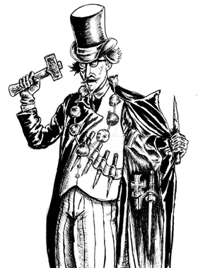 Illustrations commissioned by friends for a crossover RP story thing. It's The Shadow mixed with Courtney Crumrin and it doesn't make a whole lot of sense if you're not familiar with the RP setting, but whatever. This isn't my best work, but I'm trying to alternate the style of the illustrations between Edd Cartier and Ted Naifeh.Pigma micron/sharpie