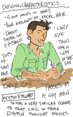 X) More Dirk than the other two put together, and more Owen than Puck, but I was surprised when I looked through my sketches at how much Tyldak there is.