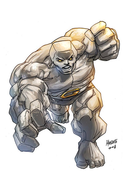 Grindstone- Tyrone Grey, a African-American former Miner, caught in a cave-in with alien material, transforming him into a 9' tall nigh-invulnerable stone monolith with massive superhuman strength. Member of the GuardstarsRelated content