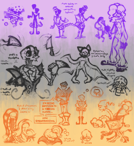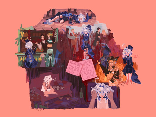 gonna scrap this later! but I just wanted to show off how many peices ive done for this Portfolio ;v;a couple of them are SCRAPS and are not going to be in my final folio, BUT! they're still pretty to look at.