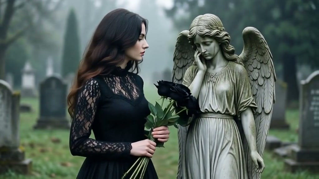 JockAngel69 - Young Goth girl in graveyard with bats flying at [🤖]