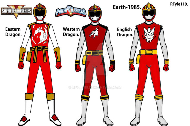 Here you go. These are the Dragon-Rangers, I already created long time ago based of Martial-Arts themed team after Maskman Team, Dairangers, Geki-Rangers. I had to change the suit because it's easy to tell the differences between them. 😎On Earth-1985: Mixed up both Super Sentai and Power Rangers Amalgamation.