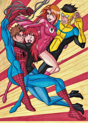 This Scarlet Spider in the middle is my Role Playing Character because I was planing to create my Marvel fan fiction using these cast of characters.